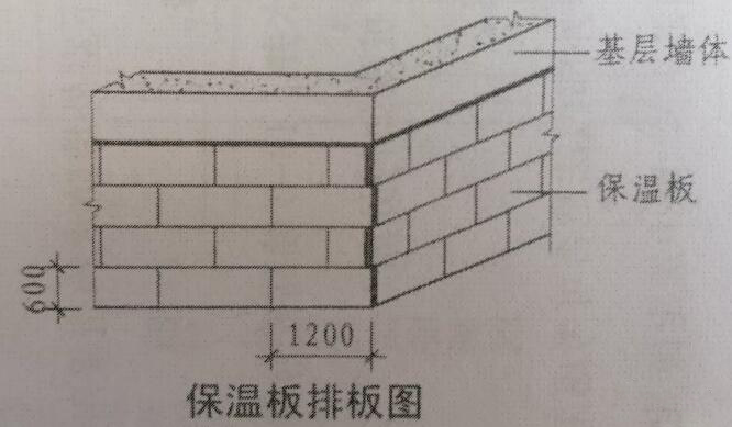 3、保溫板自下向上沿水平方向鋪貼,每排板錯縫1/2板長,角部保溫板交錯設置。