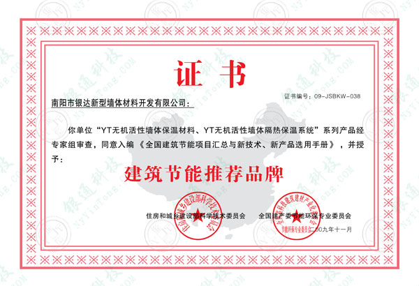 YT保溫材料取自綠色環保優質無機礦石,不會產生二次污染,綠色環保無毒無異味,而且具有一定的透氣性和隔音、防腐、除甲醛、除異味的優點,房屋通過使用YT可以達到冬暖夏涼、綠色健康、舒適宜人的效果。