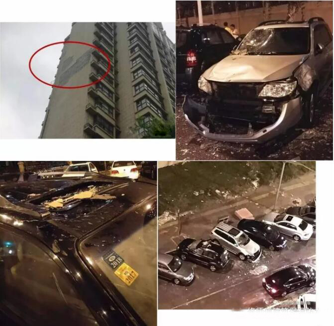這讓我想起一個非常典型的例子,之前《北青網》有爆料“通州某高檔小區發生外墻皮脫落砸中轎車事件,停在樓下的多輛轎車遭殃,被砸轎車面目全非,所幸未造成人員傷亡..”